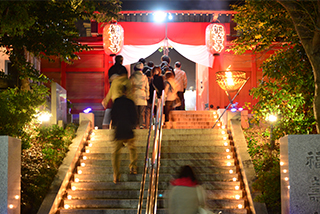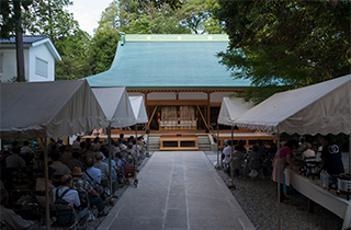 大晦日の夜になると境内ではかがり火が盛大に焚かれ、また甘酒や菓子などが無料で振舞われます。