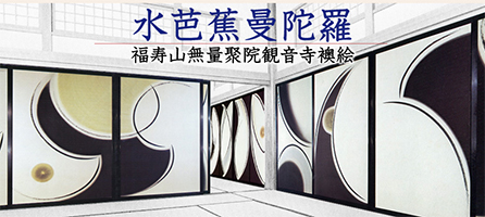 36面の壮大な墨彩画襖絵「水芭蕉曼陀羅」です。正月の公開日と特別行事の時のみ公開しています。